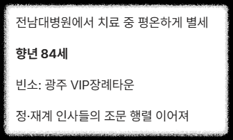 전남대병원에서 치료를 받으시던 중 평온하게 마지막 눈을 감으셨다는 소식에 많은 이들이 애도를 표하고 있는데요. 빈소는 광주 VIP장례타운에 마련되었으며, 수많은 정·재계 인사의 발길이 이어지고 있습니다. 오늘은 고인이 남긴 발자취와 중흥그룹이 마주할 새로운 시대를 깊이 있게 들여다보겠습니다. 🕯️