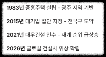 2. '지역 건설사의 신화'에서 대우건설 인수까지의 비결 📊