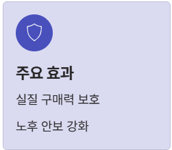 2025년 소비자물가가 전년 대비 2.1% 상승했기 때문에, 연금의 실질 가치를 보전해주기 위해 동일한 수치만큼 인상하는 것입니다. 즉, 작년에 100만 원으로 살 수 있었던 물건이 올해 102만 1,000원이 되었다면, 연금도 그만큼 올려주어 구매력을 유지하게 하는 원리입니다.