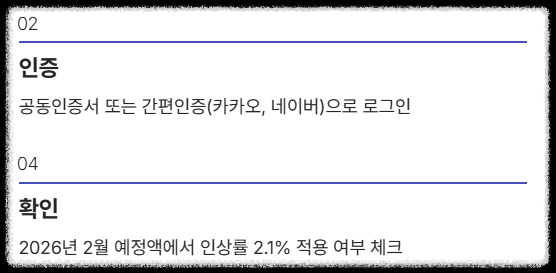 - 2026년 2월 예정액 확인 (인상률 2.1% 적용 여부 체크)